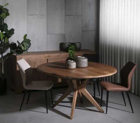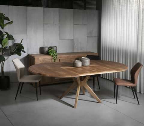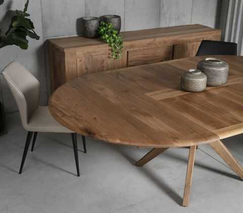 שולחן אוכל מעוצב בסגנון טבעי ומודרני מעץ אלון מבוקע מלא.נפתח לעוד 96 ס"מ.