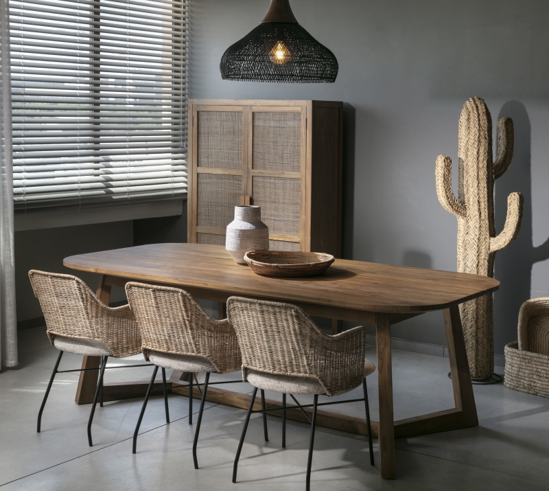 שולחן אוכל עשוי מעץ טיק מלא,עם הפלטה אובלי ורגלים מיוחדות