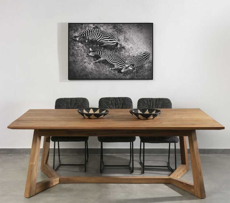 שולחן עם רגלים מעוינות, מעץ טיק ממוחזר,עם שתי הגדלות, עובי פלטה שולחן 4 ס"מ.
