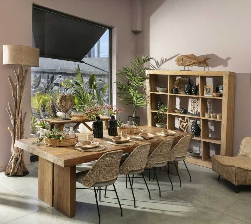 שולחן אוכל רומא עם פלטה אחת מעץ טיק ממוחזר בעובי 6ס"מ. צבע וואש.
