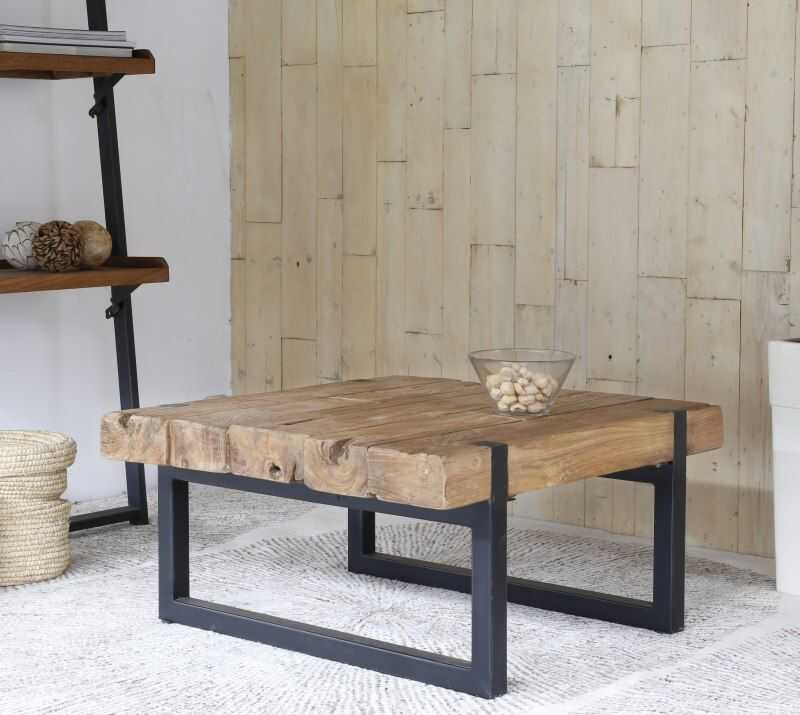 שולחן קפה לסלון מפלטת עץ מלא מסיבית ורגלי ברזל.