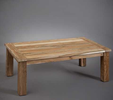 שולחן סלון מעץ טיק ממוחזר, עץ מלה, מתאים לחוץ ומרפסת. מבצה AS IS!