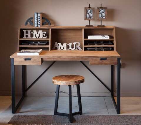 עשוי מעץ טיק ממוחזר עם שילוב ברזל .מחיר לשולחן עבודה עם מדף עליון .