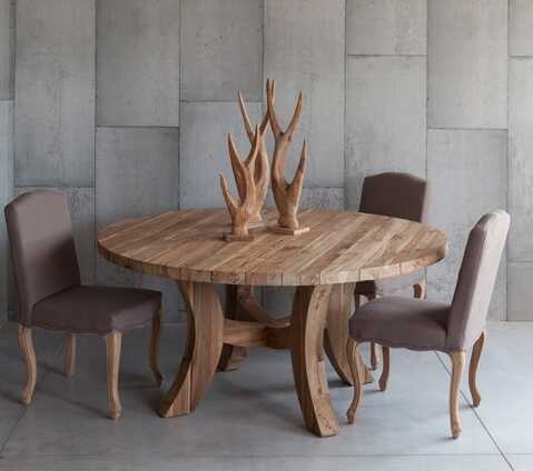שולחן אוכל עגול מעץ טיק מלא פלטה 5 ס"מ