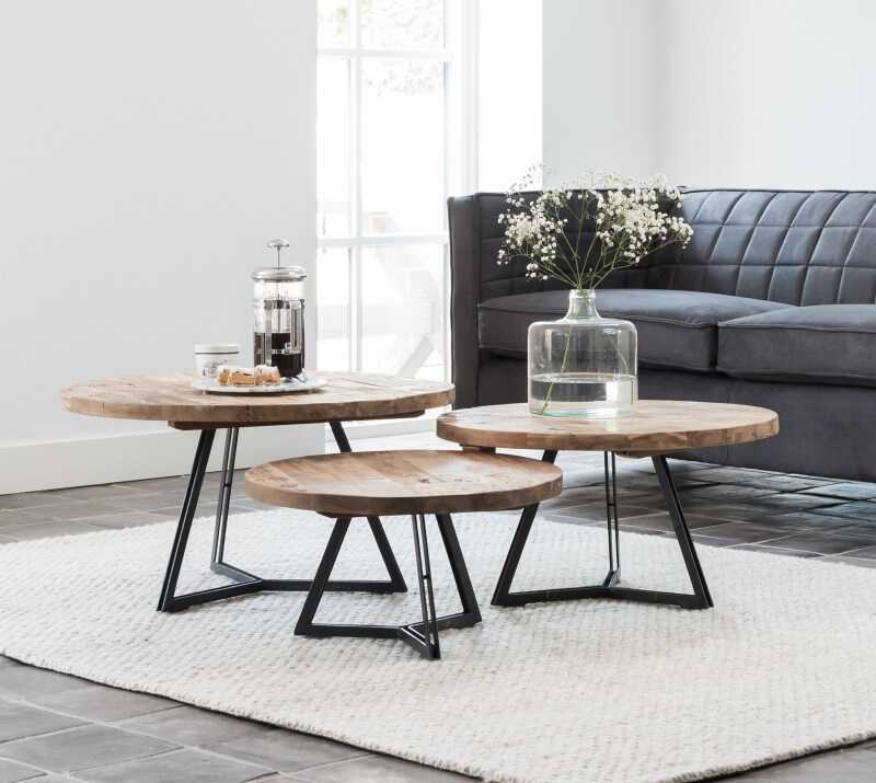 שולחנות לסלון מעץ טיק ממוחזר עם רגליים מעוצבות מברזל