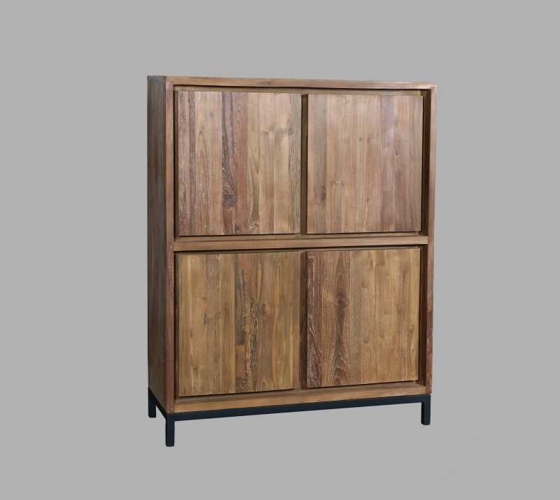 ארון מסיבי עשוי מעץ טיק ממוחזר ורגלי ברזל