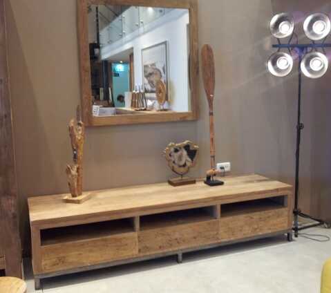 שידת טלוויזיה ארוכה ומעוצבת מעץ מלא