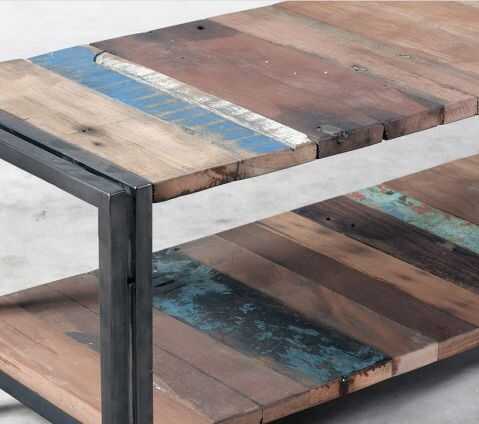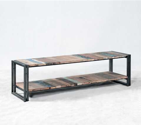 שידת טלוויזיה מעץ ממוחזר עם מדף תחתון