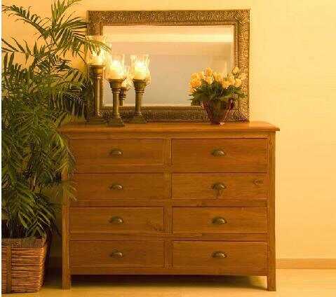 קלאסית, מעץ טיק מלא, אידיאלית לאחסון מאחר ומכילה מקום רב. השידה מתאימה לכל מקום בבית כפתרון אחסון מעוצב.