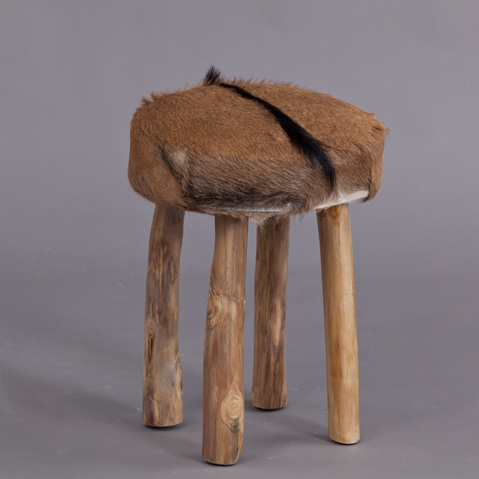 שרפרף מעוצב המשלב עץ טיק מלא עם פרווה מעניינת